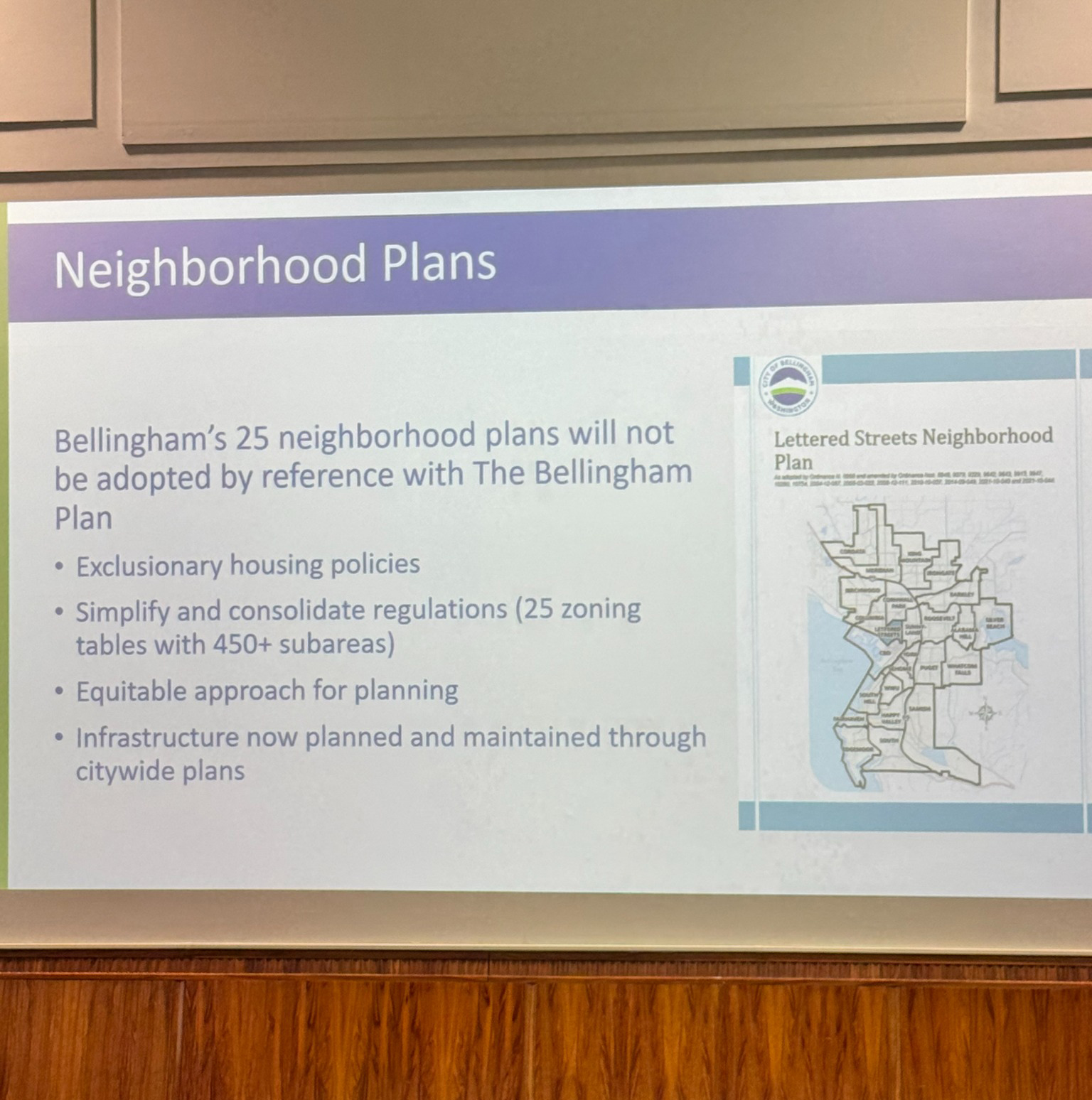 "The 25 single-family neighborhoods are not part of the Bellingham Plan."