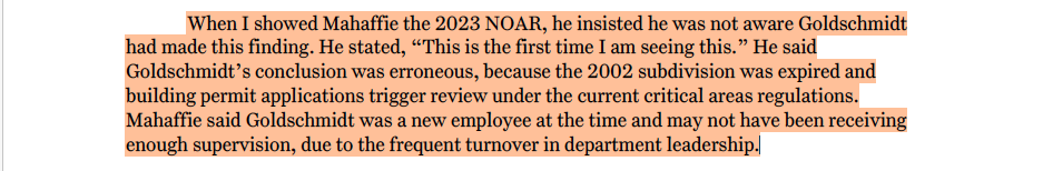 SEVEN PLANNERS, including TWO SUPERVISORS, and the CORRUPT DIRECTOR HIMSELF signed off in that report that Nathan Goldschmidt WAS WRONG, in fact, the corrupt, lying POS, Whatcom County Natural Resources Planner, Matt Mahaffie, even said this to investigators: